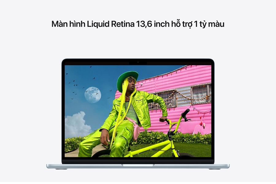 Màn hình 13.6 inch Liquid Retina hỗ trợ một tỷ màu. Ảnh và video nổi bật với độ tương phản phong phú và chi tiết sắc nét, đồng thời văn bản hiển thị siêu nét.