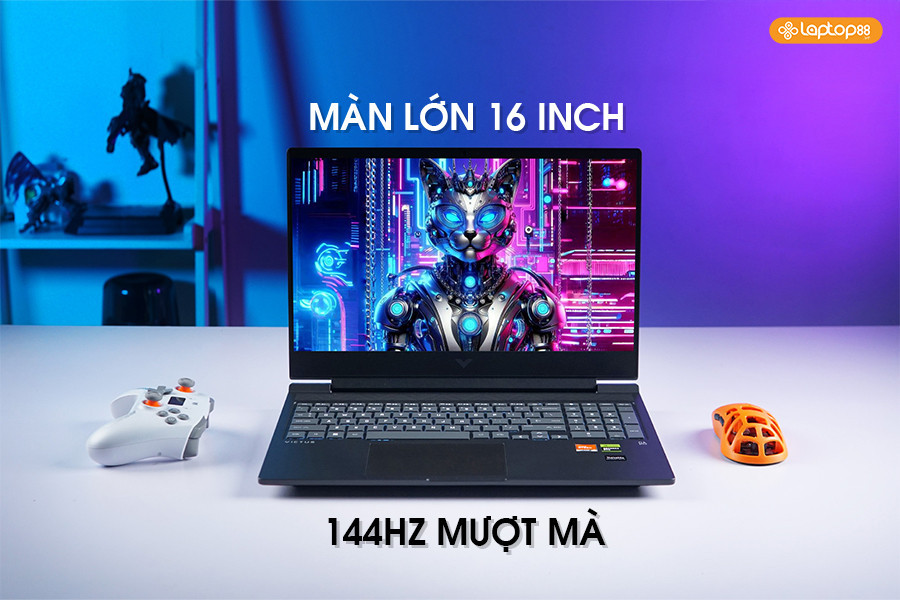 Thay vì màn 15.6 inch như ở trên thì chiếc máy này lại sở hữu kích thước lớn hơn lên tới 16 inch, tầm số quét 144Hz đem tới cho không gian hiển thị rộng rãi, cực thoải mái cho người dùng khi làm các tác vụ liên quan thiết kế đồ họa hay chơi game.
