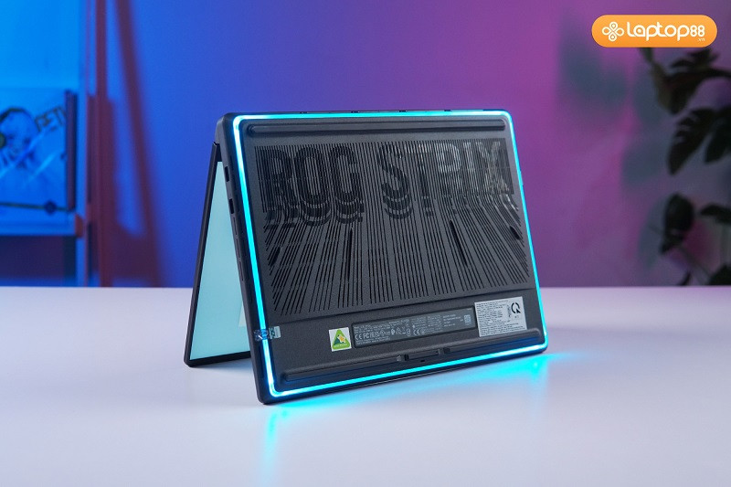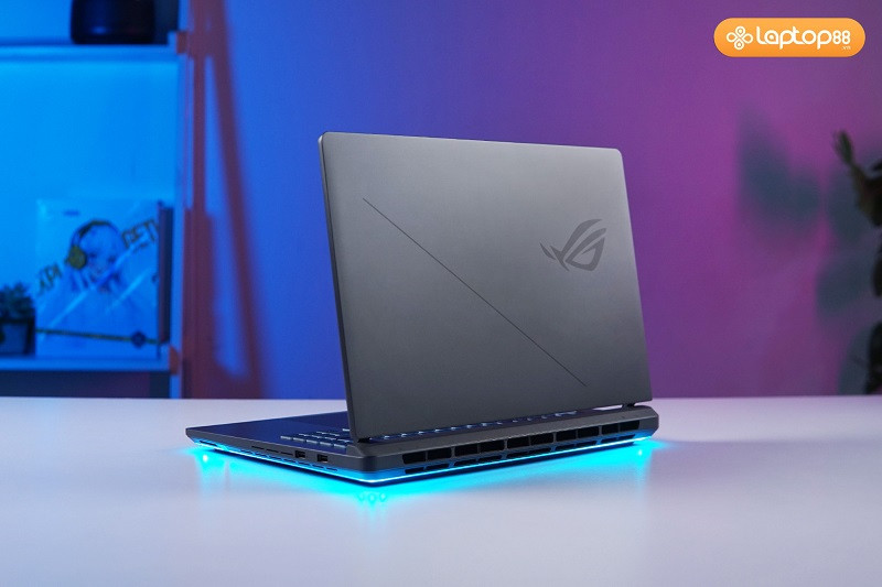 Ngược lại, Asus ROG Strix mang thiết kế dành riêng cho game thủ với nhiều đường cắt xẻ trên mặt lưng. Hệ thống đèn LED RGB được trang bị dọc theo viền mặt đáy máy và trên logo giúp tăng thêm sự nổi bật khi sử dụng trong phòng tối. Về chất lượng gia công, cả hai dòng máy đều làm rất tốt, bản lề mở gập cứng cáp, phần vỏ được ráp nối chắc chắn và chịu lực tốt.