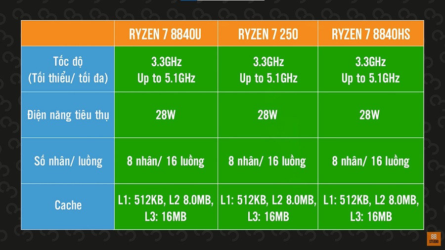 Đầu tiên Ryzen 7 250 có phải là chip U hay không? Câu trả lời có thể sẽ là có hoặc không phụ thuộc vào việc hãng sản xuất cho con chip này ăn bao nhiêu điện. Về mặt thông số, Ryzen 7 250 sẽ tương đồng với Ryzen 7 8840U và giống cả 1 CPU nữa là Ryzen 7 8840HS. Vậy nên, trên bản LOQ này thì nó cũng được bung xõa kha khá rồi nên hiệu năng cho ra không hề yếu. Với 1 số bài test mình test qua như R23 hay Vray thì đều cho số điểm cao và đáp ứng tốt cho nhu cầu công việc cần dùng tới CPU.