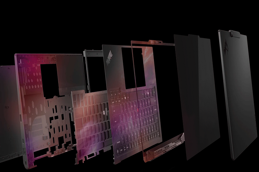 Điểm khác biệt lớn nhất trên ThinkPad X1 Carbon Gen 14 Aura Edition chính là triết lý thiết kế hoàn toàn mới mang tên "Space Frame". Thay vì cấu trúc nguyên khối truyền thống, Lenovo đã tách biệt khung bàn phím khỏi khung chính của máy. Thay đổi này mang lại lợi ích kép: một mặt giúp tối ưu hóa việc bố trí linh kiện bên trong để máy đạt được trọng lượng lý tưởng dưới 1kg trên các phiên bản dùng màn hình OLED và đáy Magie; mặt khác, nó cho phép người dùng hoặc kỹ thuật viên thay thế bàn phím cực kỳ nhanh chóng mà không cần tháo rời toàn bộ cụm palm rest như các thế hệ trước.