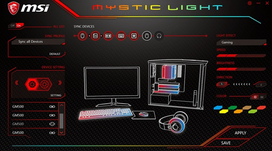 Điểm đặc biệt của Mystic Light nằm ở khả năng điều khiển ánh sáng đồng bộ trên nhiều thiết bị cùng lúc. Ví dụ, khi chọn hiệu ứng "Rainbow", ánh sáng có thể chạy từ mainboard sang card đồ họa rồi lan ra các quạt case theo đúng thứ tự, tạo nên cảm giác chuyển động liền mạch và chuyên nghiệp. Việc đồng bộ hóa này mang lại sự hài hòa trong không gian PC, điều mà nhiều hệ thống RGB khác thường gặp khó khăn do xung đột phần mềm hoặc thiếu khả năng tương thích.