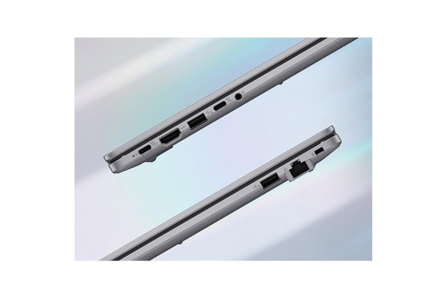 Máy được trang bị đầy đủ các cổng kết nối cần thiết bao gồm 2 cổng USB Type-A, 1 cổng HDMI, jack tai nghe 3.5mm và 2 cổng Type-C hỗ trợ sạc nhanh kiêm xuất hình ảnh. Hai điểm nhấn quan trọng nhất ở phần này chính là sự xuất hiện của cổng mạng LAN (RJ45) truyền thống và cảm biến bảo mật vân tay tích hợp sẵn.