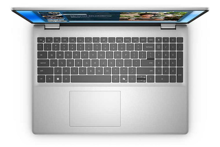 Nhìn tổng thể, Dell 16 DC16251 vẫn trung thành với phong cách quen thuộc của Dell vẫn thiên về tính ứng dụng hơn là phô trương. Máy có lớp vỏ nhôm màu bạc trông hiện đại, bắt mắt.