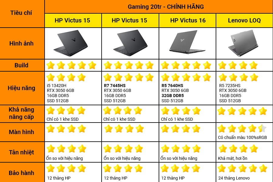 Tổng kết lại, HP Victus 15 fb3116AX BX8U4PA là một lựa chọn rất đáng cân nhắc dù vẫn còn vài hạn chế, nhưng bù lại bạn có một cấu hình Ryzen 7 và RTX 3050 6GB rất khỏe trong tầm giá này. Đây sẽ là một chiếc máy hoạt động ổn định, vừa đủ lịch sự để mang đi làm, lại vừa đủ mạnh để giải trí sau những giờ học tập và làm việc căng thẳng.