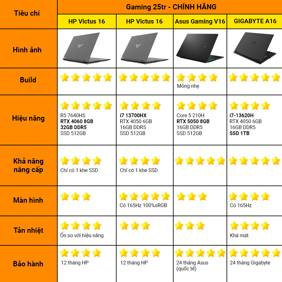 Tóm lại, chiếc HP Victus 16 R0369TX thực sự là một lựa chọn tuyệt vời trong phân khúc, với hiệu năng mạnh mẽ, màn hình chất lượng và thiết kế hiện đại.