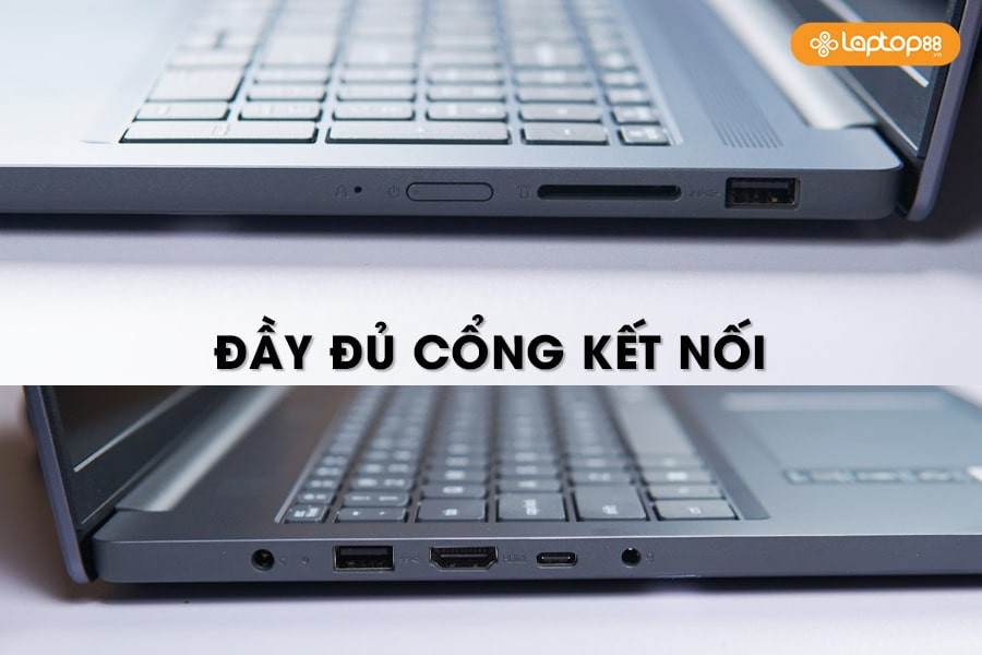IdeaPad Slim 3 14ARP10 trang bị hệ thống cổng kết nối đa dạng, đáp ứng hầu hết nhu cầu sử dụng: hai cổng USB-A 5Gbps, một cổng USB-C 5Gbps hỗ trợ sạc nhanh USB PD 3.0 và DisplayPort 1.2, cổng HDMI 1.4, jack combo tai nghe/micro 3.5mm và khe đọc thẻ SD. Máy còn có cổng nguồn riêng để sạc pin.