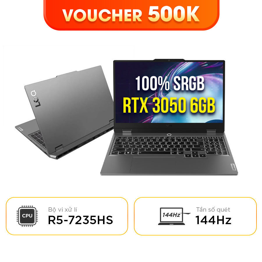 Lenovo LOQ 15ARP9: Mẫu Lenovo LOQ RTX 3050 6GB đáng mua - Chip Ryzen 5-7235HS + RTX 3050 6GB mạnh mẽ - Màn chuẩn màu 100% sRGB cực đẹp