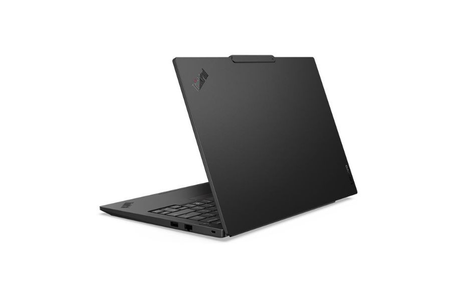 Lenovo Thinkpad E14 Gen 7 vẫn có thiết kế đặc trưng của dòng Thinkpad với tông màu đen nhám đặc trưng, logo đỏ nổi bật cùng lớp vỏ nhôm nguyên khối ở cả mặt trên và dưới, giúp máy vừa sang trọng vừa chắc chắn. Trọng lượng chỉ 1.34kg và độ dày 19.7mm, Thinkpad E14 Gen 7 mang lại khả năng di động tuyệt vời, dễ dàng bỏ vào balo hay túi xách mà không gây cồng kềnh.
