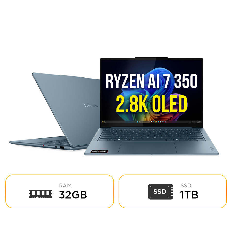 Lenovo Yoga Slim 7 14AKP10 - Hiệu năng đột phá với AMD Ryzen AI 7 350 - RAM 32GB và SSD 1TB đa nhiệm mượt mà, lưu trữ thoải mái
