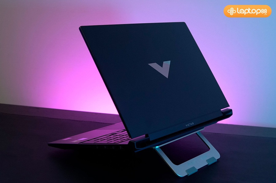 Bên cạnh đó máy còn sở hữu một diện mạo khác biệt so với nhiều mẫu laptop gaming hầm hố khác, với thiết kê tối giản, thanh lịch nhưng vẫn nổi bật nhờ logo chữ "V" độc đáo ở mặt lưng.