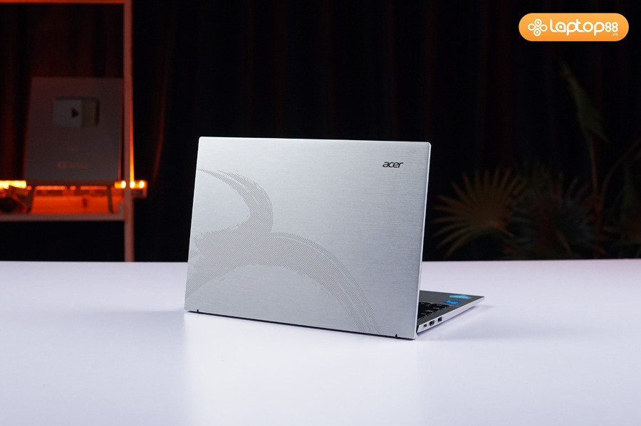 Chiếc máy tính đẹp này sở hữu thiết kế tối giản, sang trọng với gam màu bạc hiện đại, vỏ kim loại chắc chắn và trọng lượng chỉ 1.4kg, rất tiện khi mang đi học hay đi làm. Phần mặt lưng của Acer Aspire Lite 14 Gen 2 gây ấn tượng với họa tiết độc đáo, tạo điểm nhấn tinh tế và mang lại cảm giác sang trọng, hiện đại ngay từ ánh nhìn đầu tiên.